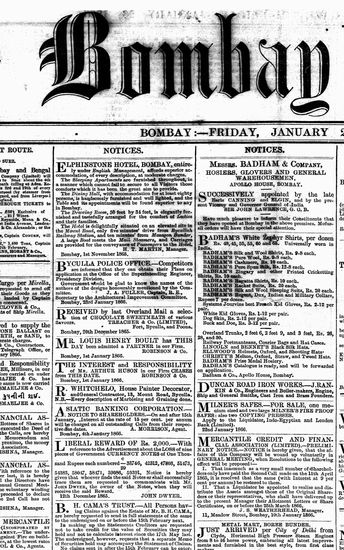 The Bombay Gazette, 26 January 1866