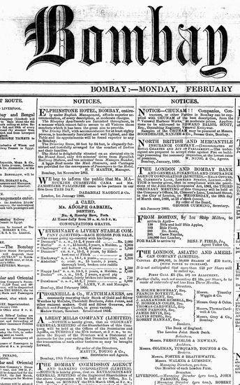 The Bombay Gazette, 26 February 1866