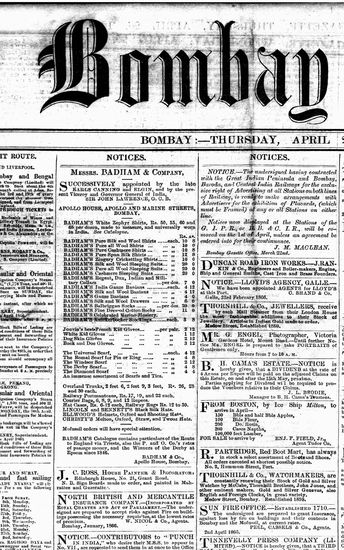 The Bombay Gazette, 26 April 1866