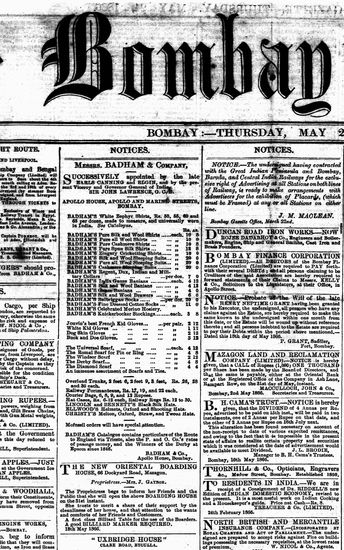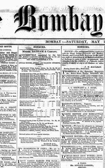 The Bombay Gazette, 19 May 1866