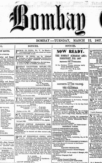 The Bombay Gazette, 12 March 1867