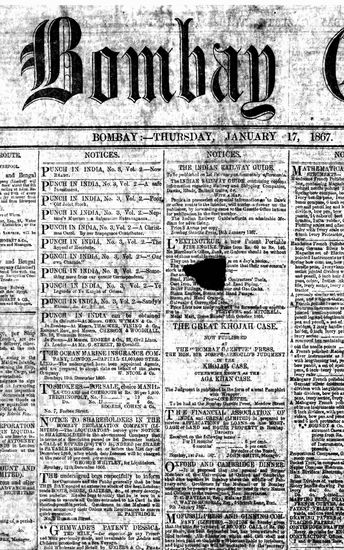The Bombay Gazette, 17 January 1867