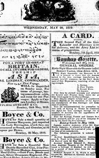 The Bombay Gazette (Weekly Edition), 26 May 1819