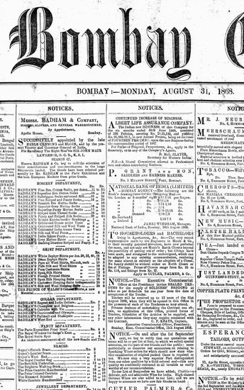 The Bombay Gazette, 31 August 1868