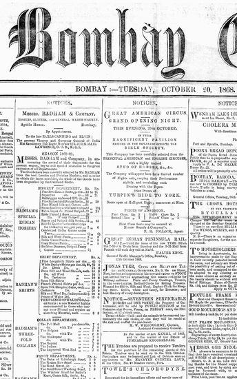 The Bombay Gazette, 20 October 1868