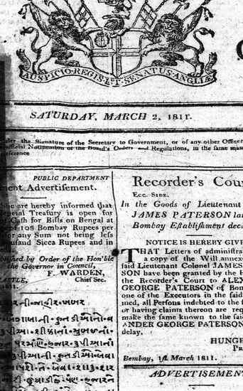 Bombay Courier, 9 March 1811