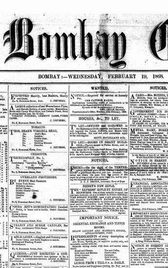 The Bombay Gazette, 19 October 1868