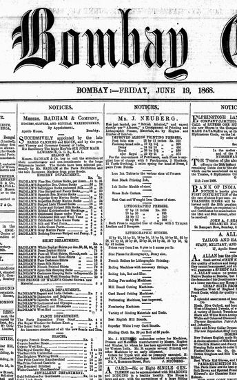 The Bombay Gazette, 19 June 1868