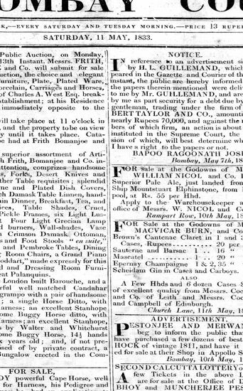 Bombay Courier, 11 May 1833