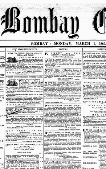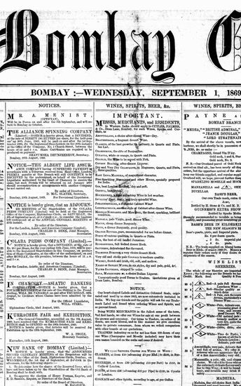 The Bombay Gazette, 1 October 1869