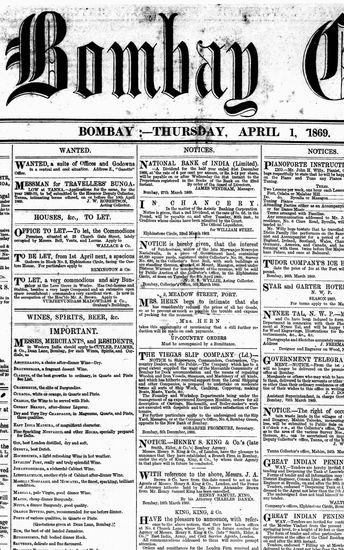 The Bombay Gazette, 1 April 1869