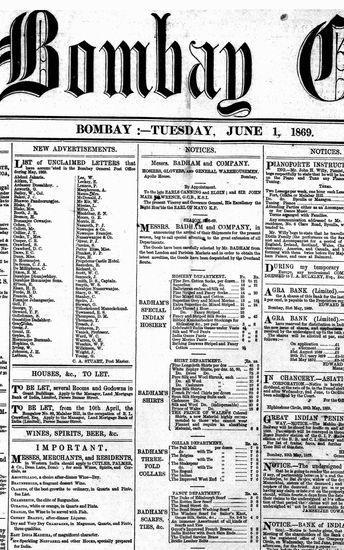 The Bombay Gazette, 1 May 1869