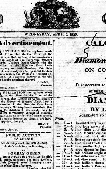 The Bombay Gazette, 5 April 1820