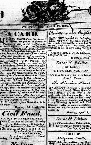 The Bombay Gazette, 19 April 1820