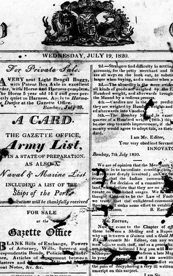The Bombay Gazette, 19 July 1820