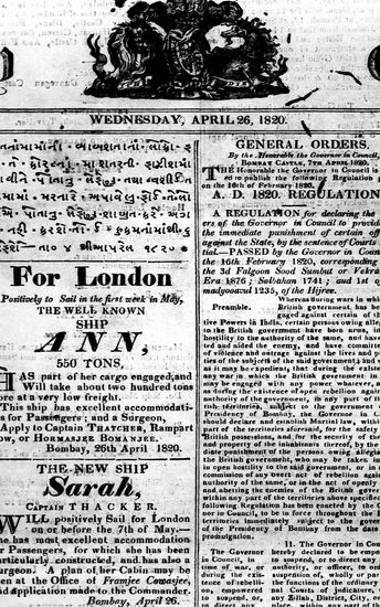 The Bombay Gazette, 26 April 1820