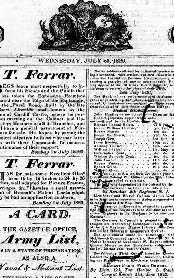 The Bombay Gazette, 26 July 1820