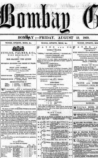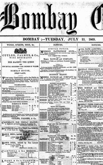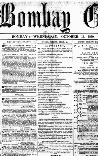 The Bombay Gazette, 13 October 1869