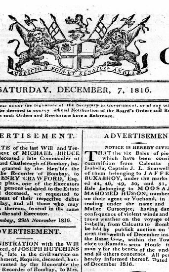 Bombay Courier, 7 December 1816