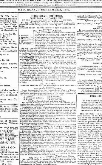Bombay Courier, 7 September 1839