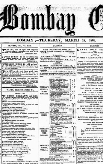 The Bombay Gazette, 18 March 1869