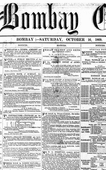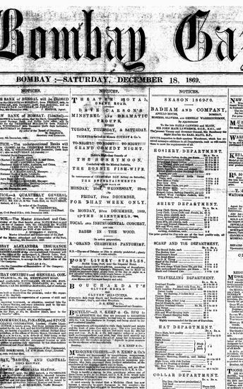 The Bombay Gazette, 18 October 1869