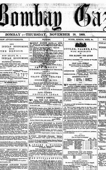 The Bombay Gazette, 18 November 1869