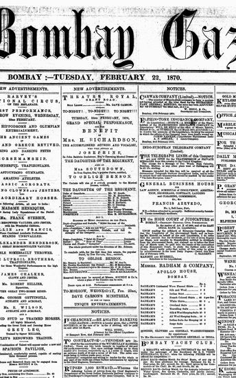 The Bombay Gazette, 22 February 1870