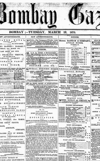 The Bombay Gazette, 22 March 1870