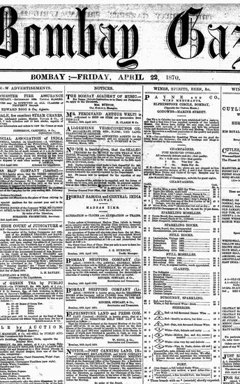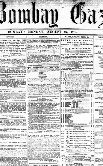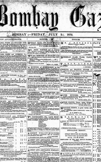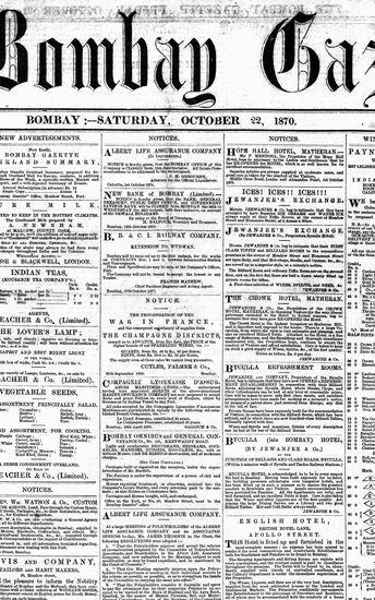 The Bombay Gazette, 22 October 1870