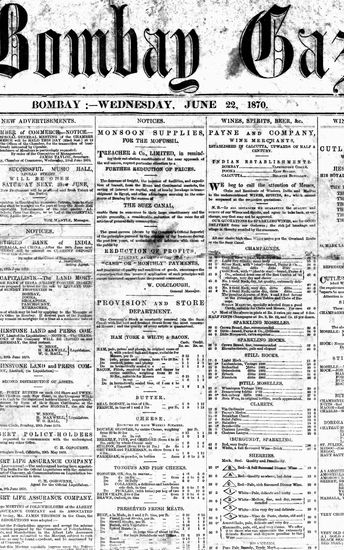 The Bombay Gazette, 22 June 1870