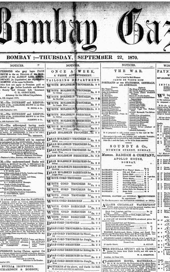 The Bombay Gazette, 22 September 1870