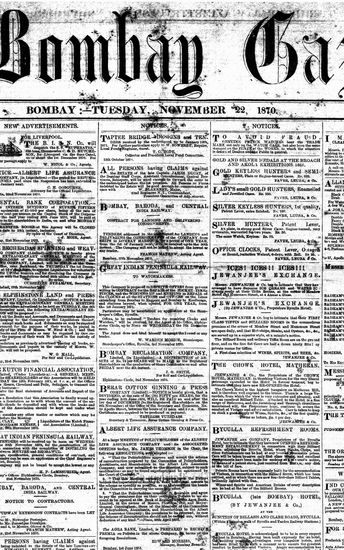 The Bombay Gazette, 22 November 1870