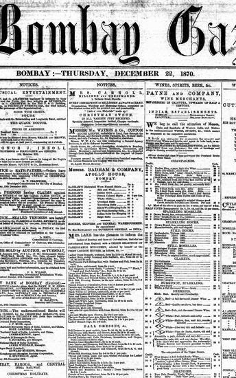 The Bombay Gazette, 22 December 1870