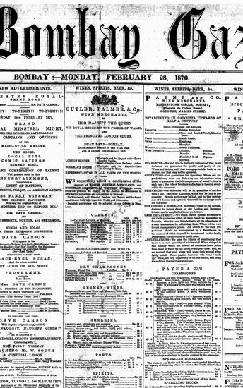 The Bombay Gazette, 28 February 1870