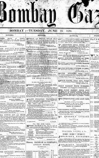 The Bombay Gazette, 28 June 1870