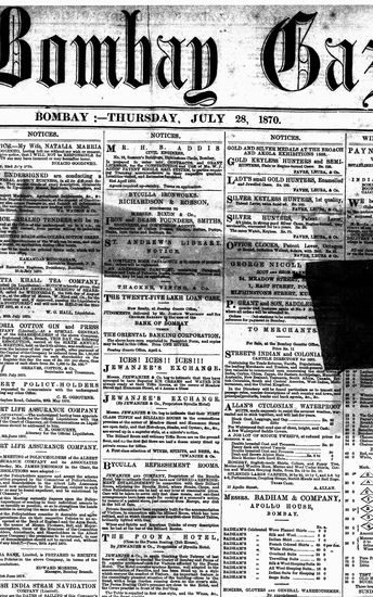The Bombay Gazette, 28 September 1870