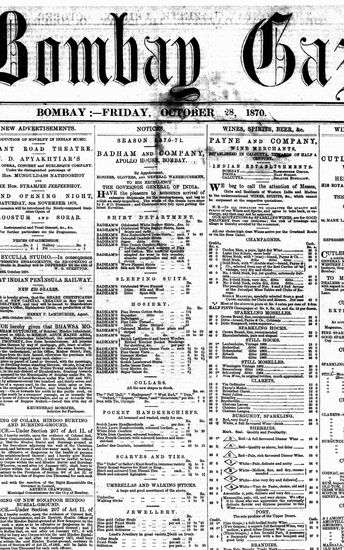 The Bombay Gazette, 28 October 1870