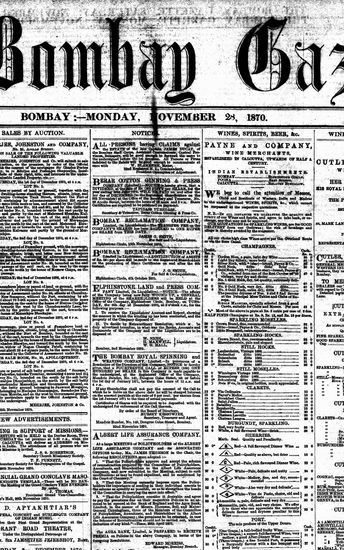 The Bombay Gazette, 28 November 1870