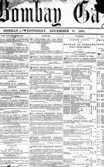 The Bombay Gazette, 28 December 1870
