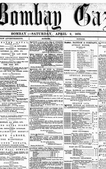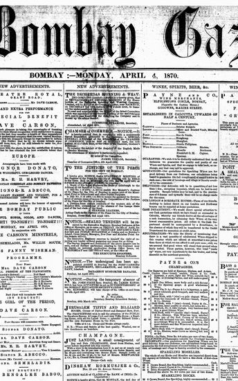 The Bombay Gazette, 2 April 1870