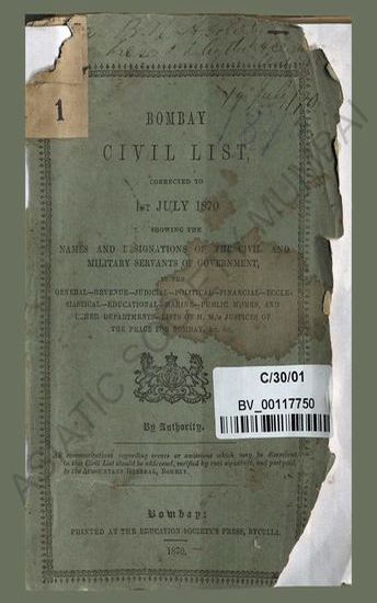 Bombay civil list corrected upto 1st July 1870, showing ...