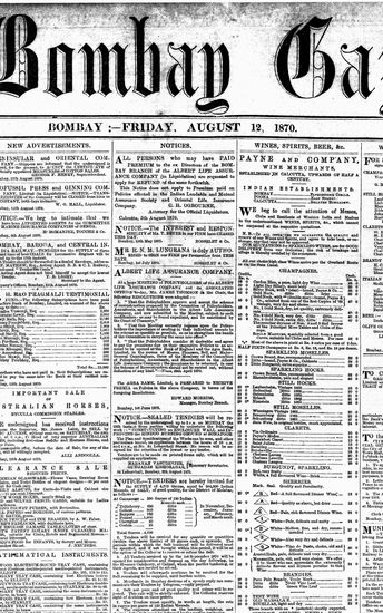 The Bombay Gazette, 19 August 1870