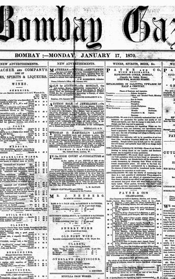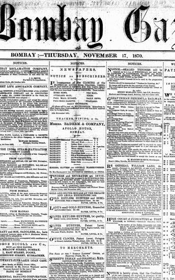 The Bombay Gazette, 17 November 1870