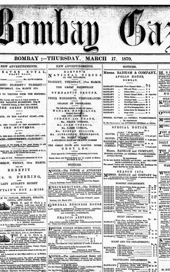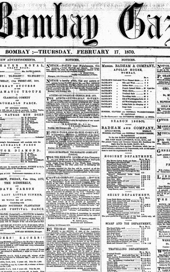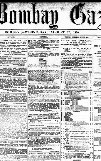 The Bombay Gazette, 3 September 1870