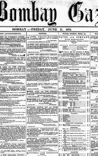 The Bombay Gazette, 17 June 1870