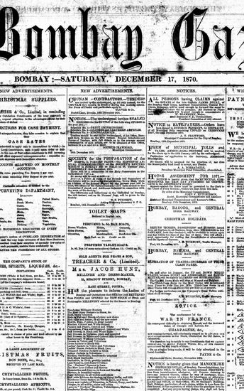 The Bombay Gazette, 17 December 1870
