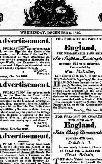 The Bombay Gazette, 6 December 1820