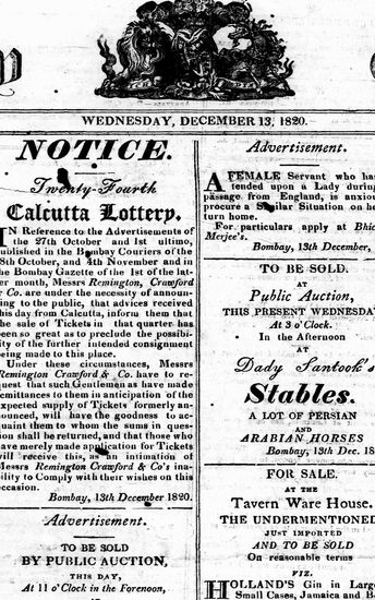 The Bombay Gazette (Weekly Edition), 13 December 1820