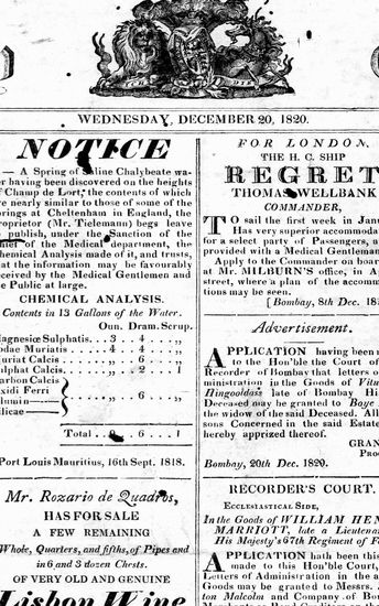 The Bombay Gazette (Weekly Edition), 20 December 1820